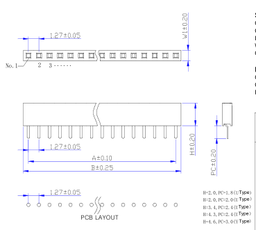 1.27×2.0mm Customized Female Header 180° Double Row PA6T for PCB